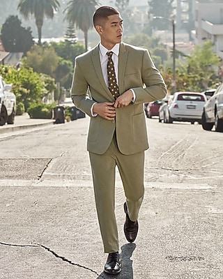 Extra Slim Solid Green Cotton Blend Suit Pant Express