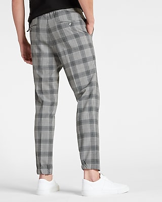 Slim Gray Plaid Wool Blend Jogger Dress Pants Express